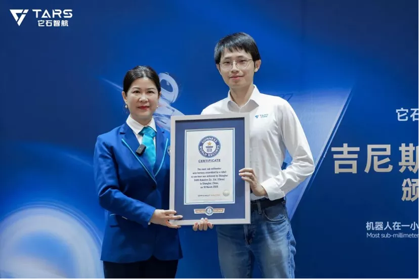 与隔壁跳舞打拳的机器人相比,它石智航的展台显得很务实,机器人A1没什么花拳绣腿,但却以一小时百余次的速度,创造了“机器人在一小时内装配亚毫米级线束最多次数”的吉尼斯世界纪录。