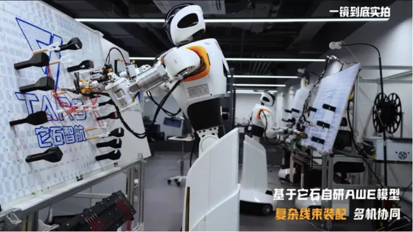 攻克线束装配,直接把它石A1与还在工厂做搬运分拣工作的机器人们拉开了差距,也把它石的模型能力放到了一个值得单独审视的位置。