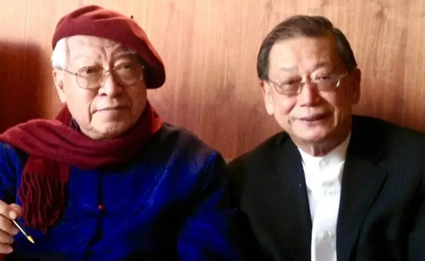湾区著名书画家古铣贤(右)撰文追忆欧豪年大师(左),笔歌墨舞寄深情。(受访者供图)