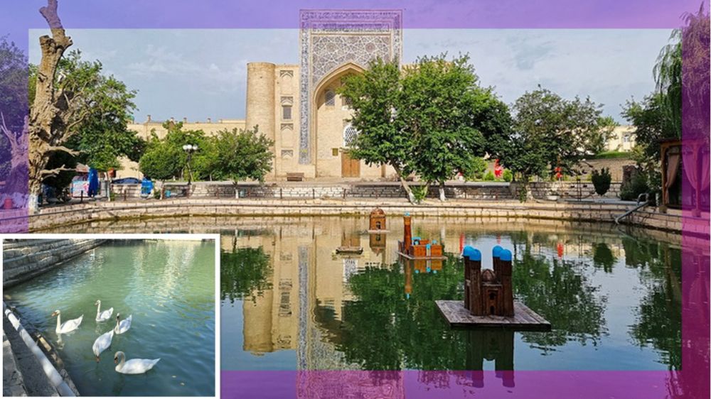 1622年,时任布哈拉统治者的Imam Quli 可汗,令其叔父兼大臣,Nadir Devonbegi,将老城中心的一处商队客栈改建成经学院。叔父很快完成了任务。某日,他看着紧邻经学院的一片房产,计上心头:何不在此开凿个池塘?他向宅邸主人,一位年迈的犹太寡妇,表达了高价购房的意愿。谁知,寡妇膝下无子,对金钱并无渴求,竟拒绝了叔父的提议。