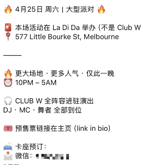 一张满是亚裔面孔的活动海报,在澳新地区引发了热议。墨尔本热门夜店La Di Da宣布,将与位于市中心的另一家知名场所Club W联手,于澳新军团日(4月25日)当晚举办一场名为“特别之夜”的大型舞蹈派对。