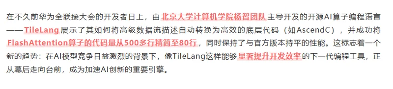 但咱们也不能一直活在别人屋檐下。构建属于自己的软件生态,迫在眉睫。所以最近几年托尼也开始看到像 TileLang 这类由中国主导的生态项目,尝试在不同的方向构建出属于自己的护城河。