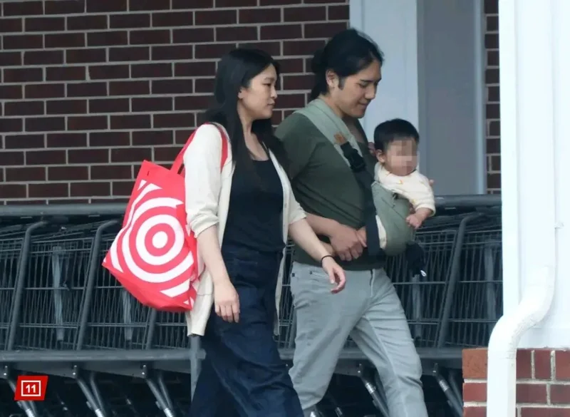 2026年的美国康涅狄格州,一个普通得不能再普通的春日午后,一家三口出现在费尔菲尔德郡的街区。女主穿着黑色上衣、牛仔裤配米色针织外套,手上提着一个平价连锁超市Target的购物袋;男主墨绿色T恤搭卡其裤,胸前绑着婴儿背带,里面坐着一个头发乌黑的小家伙。三个人慢悠悠地逛了起司店、面包店和超市,画面朴实得就跟隔壁邻居出门遛弯没两样。