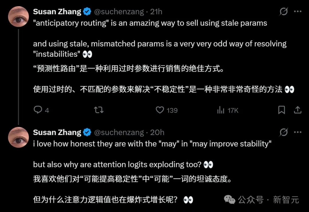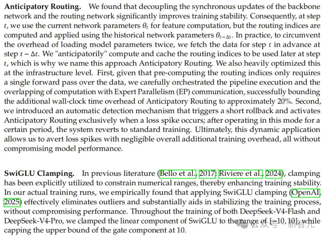 Anticipatory Routing和SwiGLU Clamping,DeepSeek确认「显著有效」,但紧跟一句「底层机理仍是open question」。
