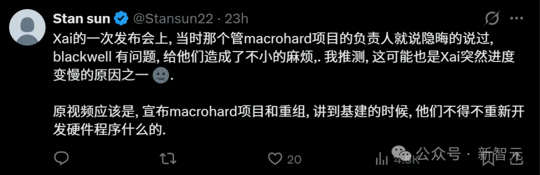 xAI在一次发布会上,Macrohard项目的负责人曾隐晦提到,英伟达最新的芯片给他们造成了「不小的麻烦」,不得不重新开发硬件适配程序。这或许也解释了xAI进度突然放缓的原因之一。