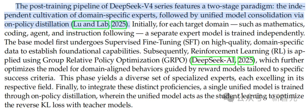 如果说V4的预训练是在和硬件博弈,那么它的Post-training则展现了教科书级别的工程审美。