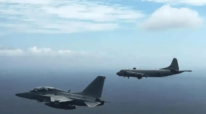 近年来,日菲军事关系快速提升,在武器装备、联演等层面加强合作,图为日本军机和菲律宾军机在联合演习中编队飞行。