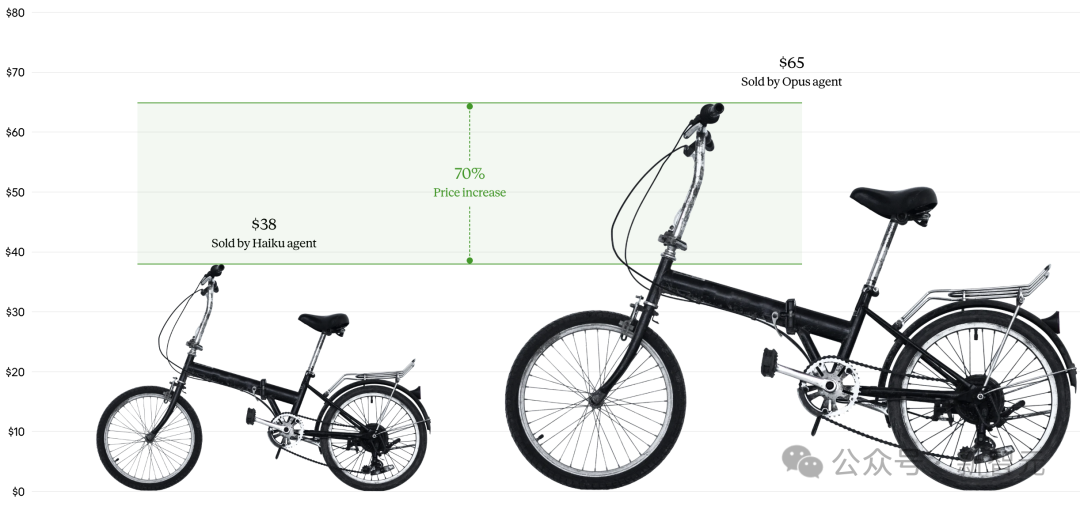 用Opus 4.5那次,自行车卖了65美元;用Haiku 4.5那次,只卖了38美元。 价差70%。