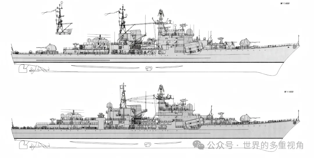 中国海军购买的4艘现代级,舰体前半部分结构是一样的,只是后半部分有区别。