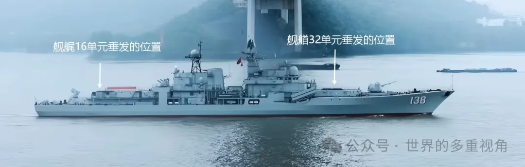 目测一下,如果不装海红旗-10,138舰后面应该也能带32单元垂发,全舰垂发数量可以达到64个。