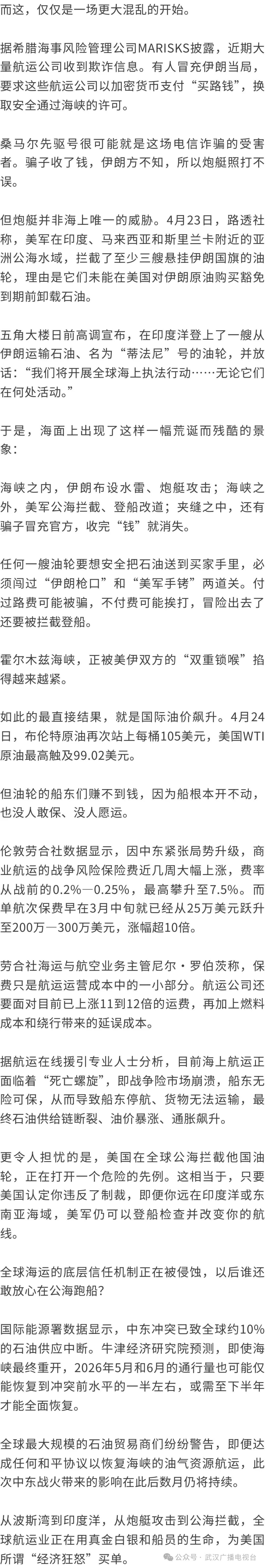 霍尔木兹油轮绝望求救中国新闻社