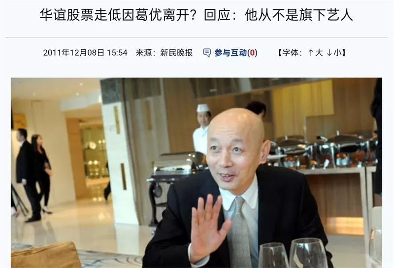 而头一年葛优离开时,华谊兄弟的股价也是接连下滑,从19.49元跌至16.37元。直到公司方站出来称葛优从来不是旗下艺人,股价才开始回升。