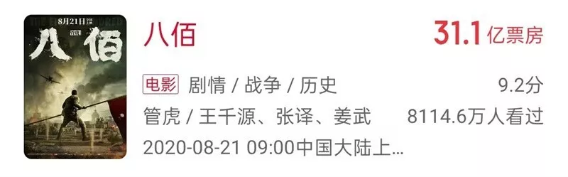 2020年的《八佰》倒是大爆,能让华谊兄弟回收6亿多,覆盖上半年2.31亿的净亏损。可惜华谊兄弟的窟窿太大,即使有这笔回头钱,当年的净亏损还是高达10.48亿。