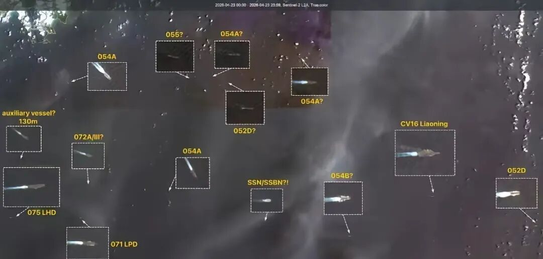 2026年4月23日,欧洲卫星哨兵-2号(Sentinel-2)拍摄的一张南海卫星照片流出,立刻风靡全球军迷之中,看下图,卫星照片中,显示14艘中国航母战斗群,军迷朋友们都说这是“决战级舰队”,而在我军西部海域,美日菲7国正在举行军演。很多军迷纷纷嘲讽美日菲:“别演了,胡塞武装都打不赢,在中国灭国舰队面前,只能是靶子”。其中还有一个重要细节哦?