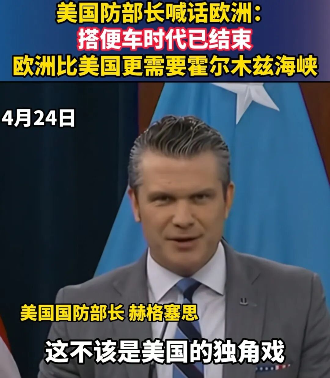 全球各国人民都知道,美军打不赢伊朗,自己偷袭发动战争,却无法自己结束,一直当着全球的面向“多国求救”,到了4月24日,美国国防部长还在求欧洲出兵救它们。