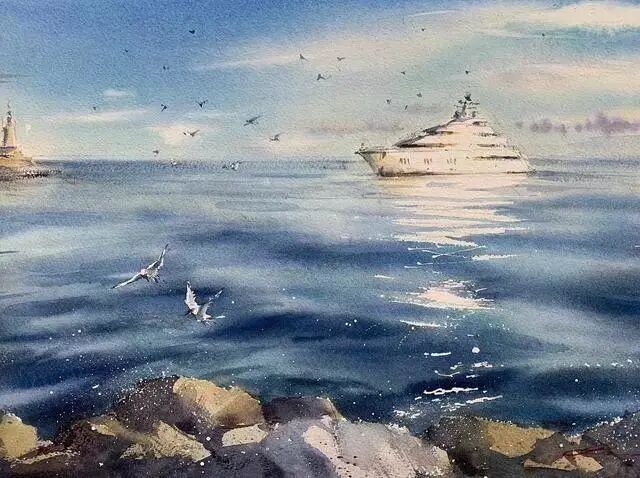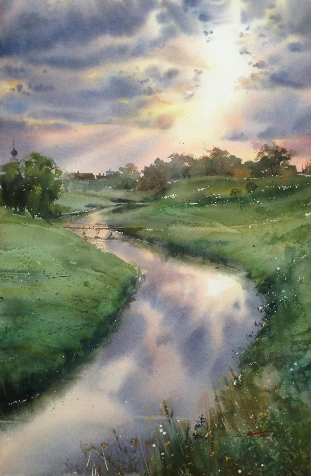 Galina Gomzina一直对水着迷:“水是真正的创造者。有时,它只停留一小段时间的画面,然后就消失了,随后出现了新的画面……而对于艺术家来说,将这些瞬间捕捉并描绘在画纸上是一件令人非常着迷的工作。”