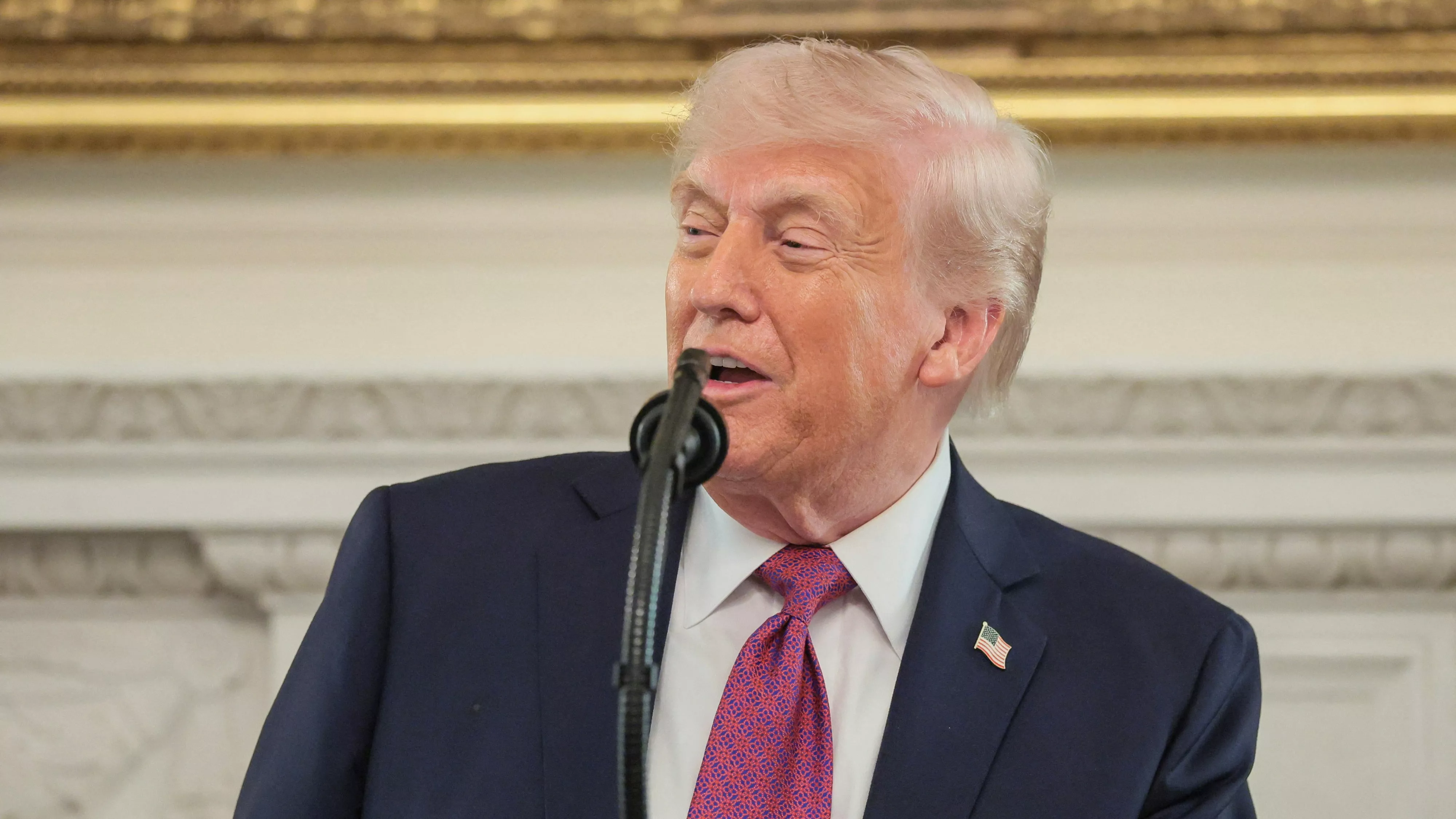 2026年4月21日,美国华盛顿,总统川普(Donald Trump)在白宫国宴厅向NCAA全国大学冠军发表讲话。(Reuters)