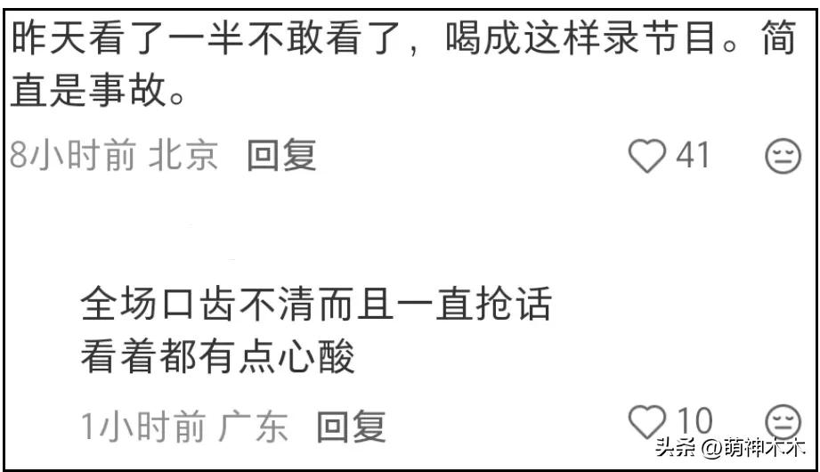 最新一期节目中,不止一位网友注意到小S又喝醉了,整个人思维迟缓,动不动就发懵走神,说话大着舌头,口齿不清还要抢话。