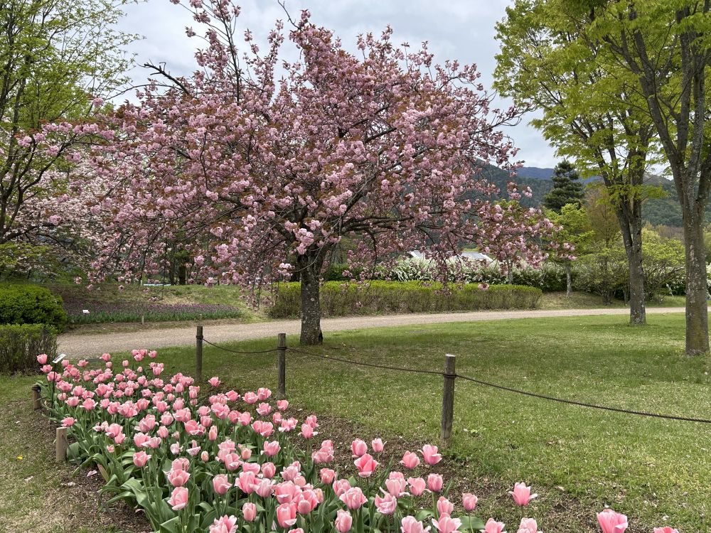 我说要在新买的地里种粉色樱花和粉色郁金香,象这个照片一样。他说他喜欢杂木林