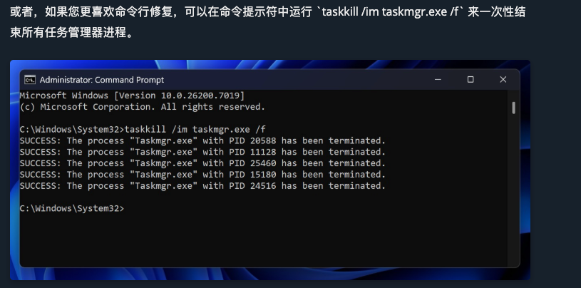 此时要想关闭进程,你得搁任务管理器里专门搜“Task Manager”结束,或者跑到命令行里,老老实实敲代码。直到 11 月的更新,这 BUG 才被正式修复。