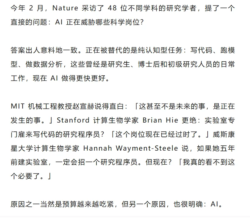 当 AI 跑马圈地,在场内的科学家,就会迁徙到 AI 边界之外。但关键词是「在场内的」,他们有知识、有经验、有判断力,知道该往哪迁。