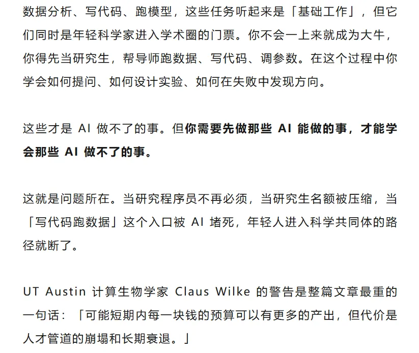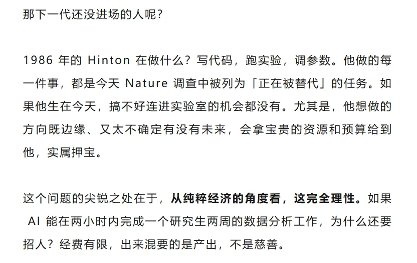 这句话说得严重点:省了一个研究生的工资,但可能毁了一个未来的 Hinton。