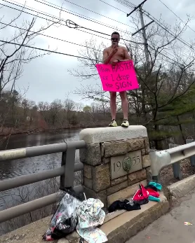 当时的利亚全身上下除了一双亮黄色的跑鞋和一条紧身泳裤,几乎赤条条地站在微凉的春风里。最绝的是他手里举着的那块挡在关键位置的纸板,上面赫然写着一行大字:“跑快点,不然我就把牌子扔了!”