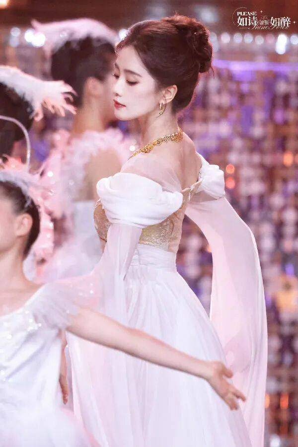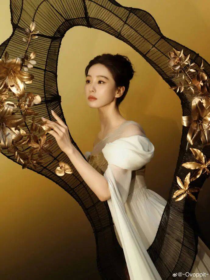 刘诗诗一身米白雪纺配鎏金刺绣往那儿一站,圣光普照四个字一点不夸张。