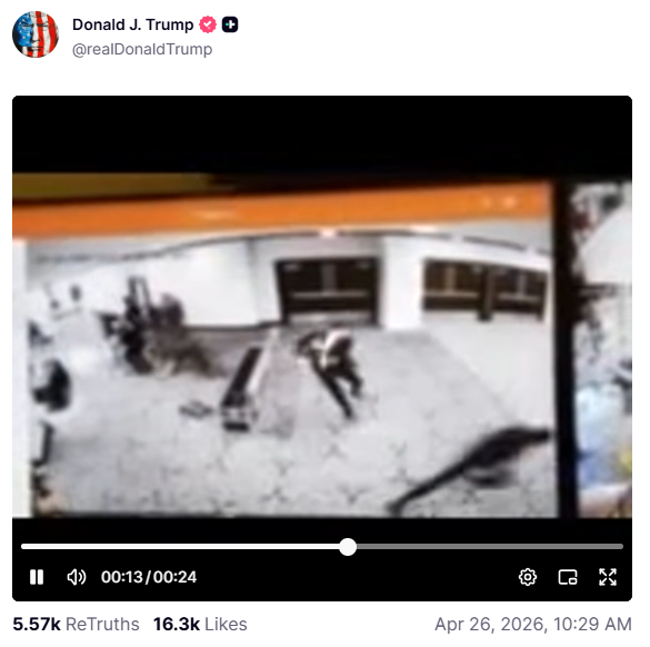 川普在社交媒体发文赞扬特勤局的迅速与英勇:“华盛顿的晚上非同寻常,特勤局及执法部门表现出色,他们行动迅速且勇敢。”