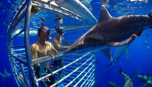 我们经常可以在互联网上看到,潜水员们拿着相机和鲨鱼亲密接触,就算你是一个“不胜水力”的人,你也可以参加“鲨笼潜水”项目和鲨鱼近距离接触。