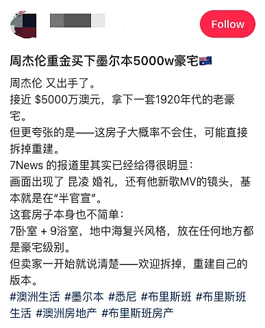 周杰伦豪掷5000万澳元!拿下墨尔本豪宅!引发大批网友热议!