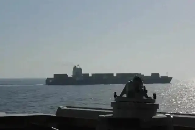 凯恩还透露了本周拦截三艘伊朗相关船只的细节,行动从周日开始,目标是悬挂伊朗国旗的图斯卡号货船,美军先炮击再登船,对机舱和发动机舱发射了9枚惰性弹,把船打瘫了。