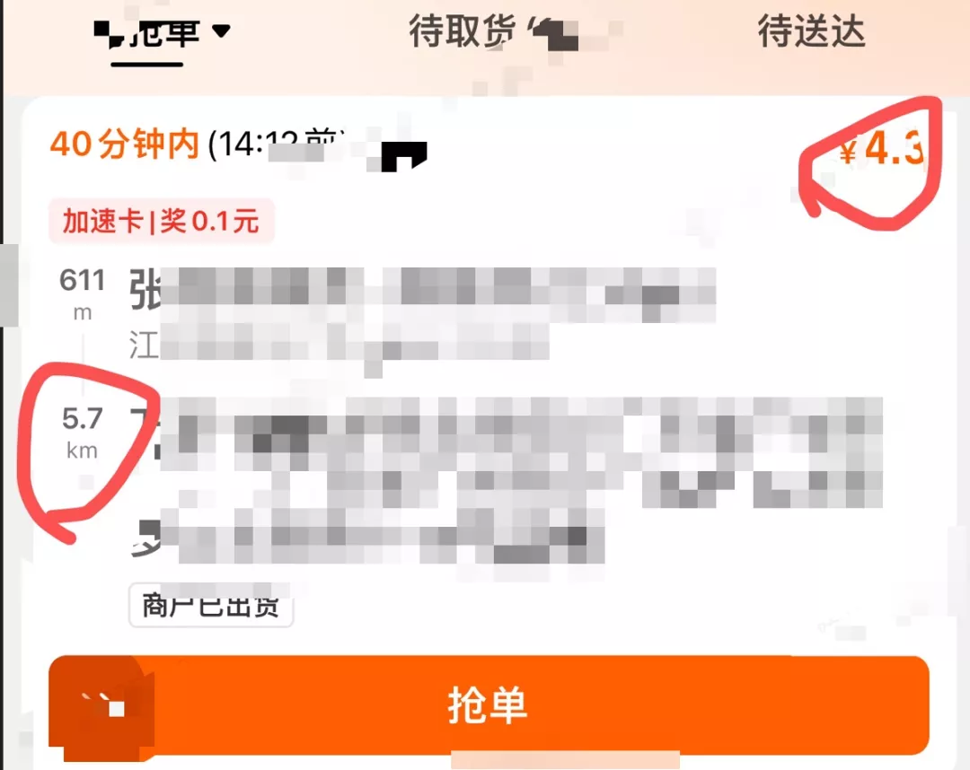 很久没跑美团,但最近看到的美团单,低至4.2元(去年最低是4.5元)一单,并且4.5元的订单的距离,能刷到的订单,是远至3.8+公里。即无限逼近1公里1元。(估计有一些已经低到1公里1元以下)