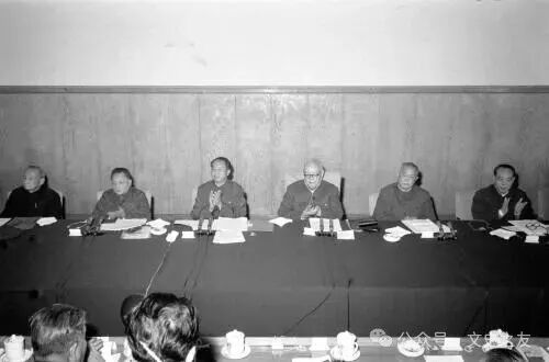 ▲陈云、邓小平、华国锋、叶剑英、李先念、汪东兴(左起)在十一届三中全会上