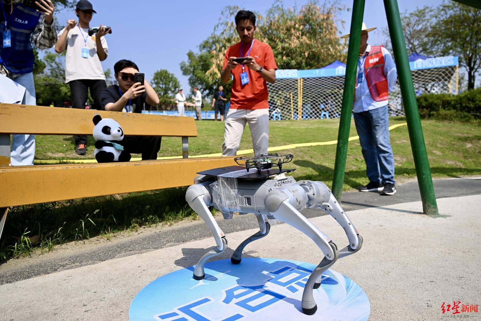 何为无人机马术?电子科技大学航空航天学院学科竞赛中心主任方黎勇告诉红星新闻记者,比赛中,每支队伍操控一台无人机和一台机器狗,无人机执行空中任务,包括空中障碍穿越与二维码采集;机器狗执行地面任务,包括隧道、沙坑、坡道通行与二维码采集。过程中,无人机与机器狗还需要完成两次汇合,即无人机要降落在机器狗背上,最终按完成任务的得分与用时排名。