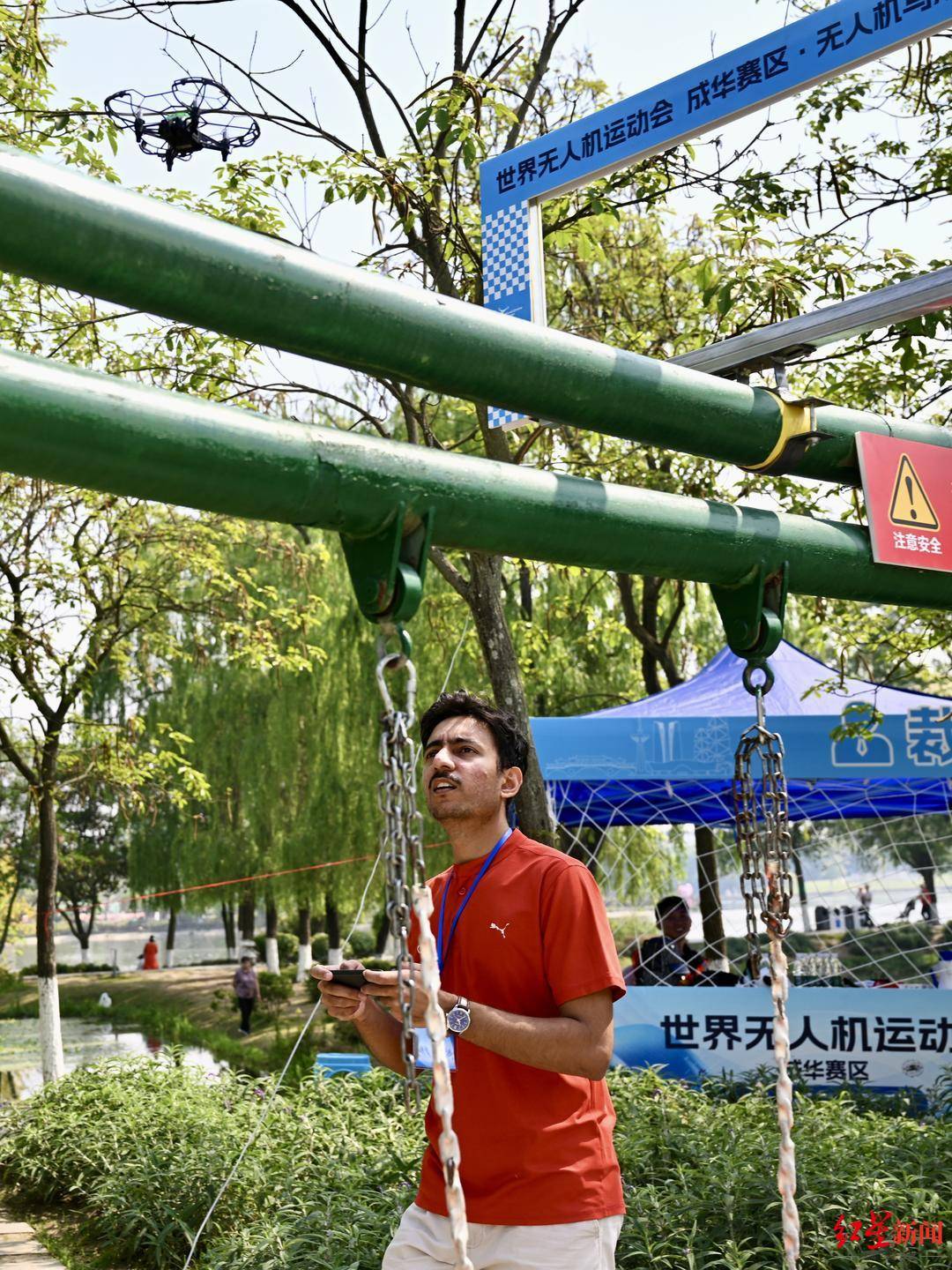 4月25日,世界无人机运动会压轴赛项——无人机马术赛在成华赛区北湖生态公园举行,来自世界各国的选手们齐聚湖边,每一次精彩的操作,都引得快门声不断、赢得阵阵欢呼。