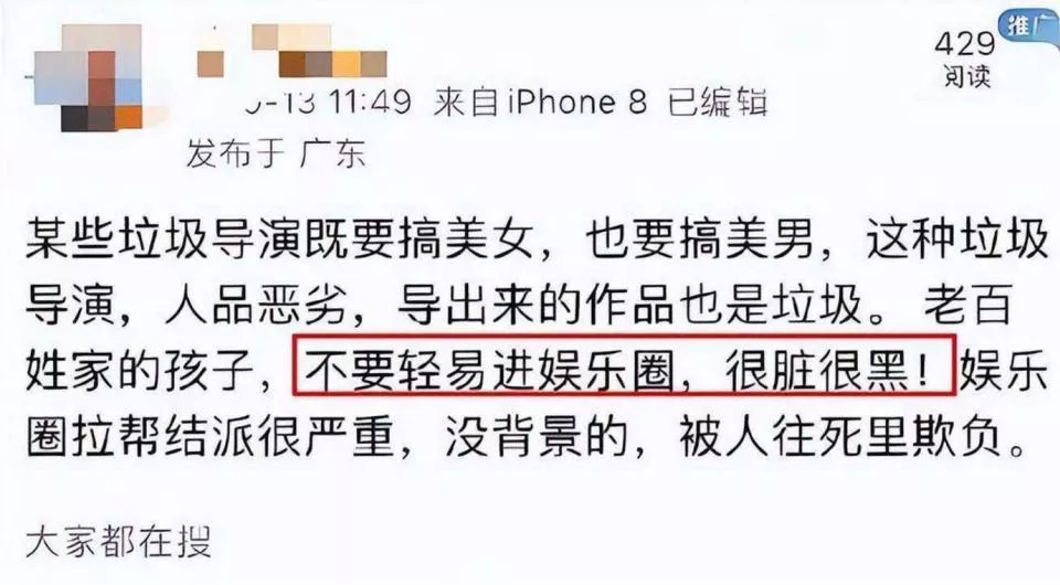吴京当年在片场劝过一个小女孩:“千万别进娱乐圈,这里太脏了。 ”这话说得直白,但却是掏心窝子的大实话。老百姓家的孩子,没背景、没人脉、没有试错成本,一旦踏进去,大概率成为资本的消耗品。那些光鲜亮丽的“一夜爆红”故事,不过是幸存者偏差遮住了底下堆积如山的失败者。