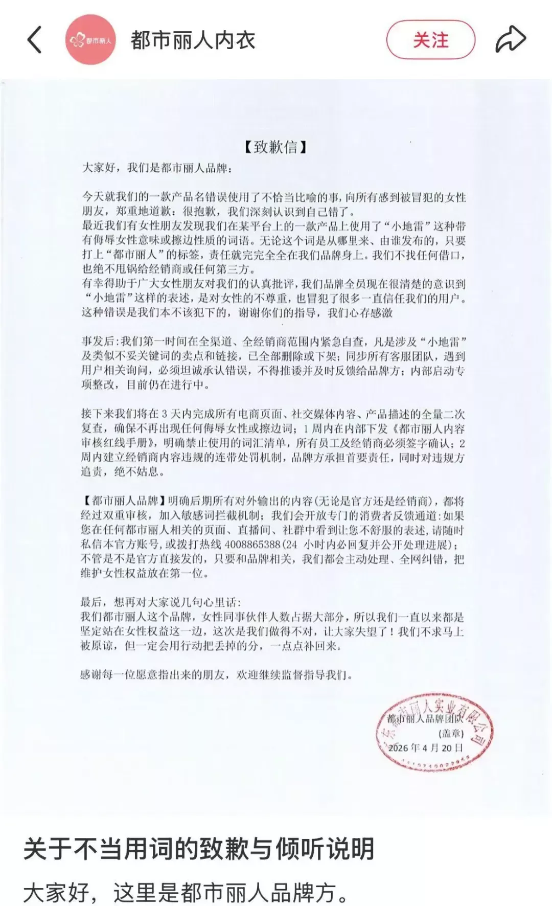 都市丽人这次的道歉,倒是提供了一个难得的正面样本。它没有甩锅给经销商,没有找借口,没有推卸责任,而是老老实实承认“我们错了”。这种态度值得肯定,但这只是第一步。真正的考验在于,它能否真正建立起对女性消费者的尊重,而不仅仅是应付舆论的危机公关。毕竟,道歉可以是一时的,但尊重必须是持久的。
