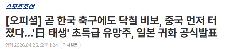韩媒表示,这对于中国足球而言,无疑是巨大损失。川崎前锋是日本足坛老牌劲旅,能被日本顶级俱乐部重点长期培养,足以证明其顶级天赋与发展潜力。倘若留在中国,他本有机会成长为中国国家队后防线核心球员,如今却选择加入日本国籍。至于其归化选择,对于日本身份的认同非常重要。