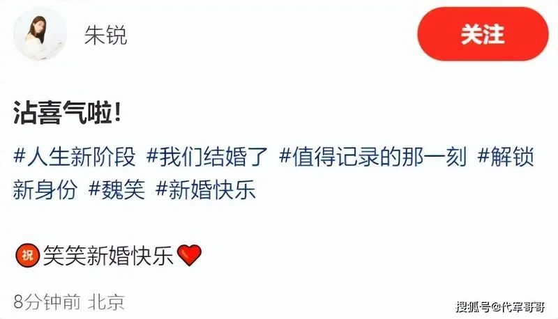 此次魏笑官宣结婚,圈内好友也纷纷送上祝福,朱锐等艺人留言感慨“要沾喜气”,网友们更是刷屏“新婚快乐”“百年好合”,祝福这对低调相恋多年的恋人,也为这份纯粹的闺蜜情感动。在娱乐圈中,有人追逐流量名利,有人坚守真心热爱,魏笑不仅收获了势均力敌的爱情,还有不离不弃的友情,无疑是人生赢家。