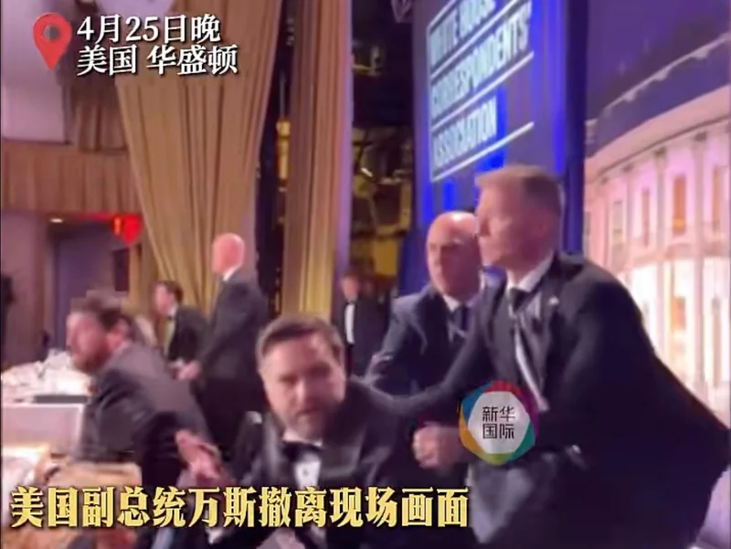 法新社和美国有线电视新闻网美国当地时间25日晚发布视频,曝光当天白宫记者协会晚宴“安全事件”的现场画面。画面中手持枪械的安保人员跨越多个餐桌前往主席台护送政要撤离现场。美国总统特朗普、副总统万斯在安保护送下撤离现场。