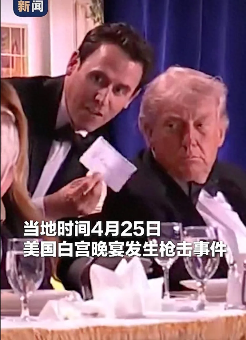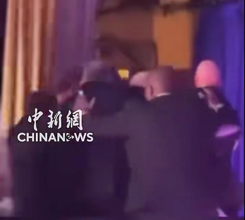 央视记者刘骁骞:这场枪击来得猝不及防。据多名现场目击者描述,晚宴开始仅仅五分钟左右,特朗普正与当晚的表演嘉宾进行交谈,特勤局人员就突然冲上舞台。宴会厅大堂内传出多声枪响,现场逾两千名宾客——包括记者、政府官员和各界名流惊慌失措,纷纷躲到餐桌下。特勤局特工高喊有人开枪,随即将特朗普和梅拉尼亚护送到讲台后方,迅速带离会场。