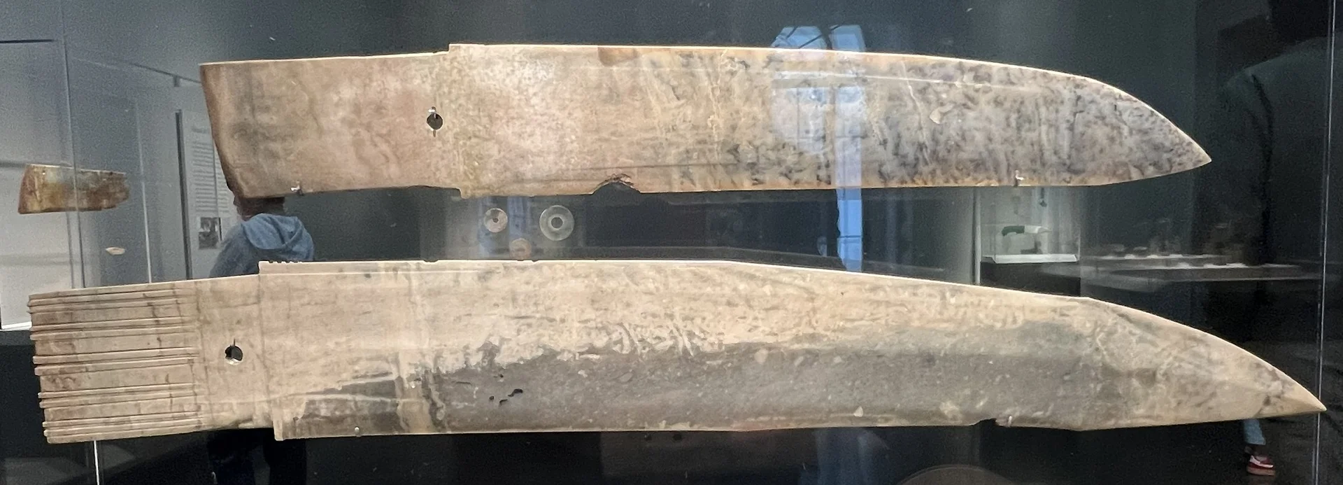 制作这种仿日常器物形制的礼仪玉器的传统,在新石器时代之后仍然延续。上方那些薄而呈分叉状的刃部,以及其下的戈形器,在良渚墓葬中并未发现。相反,它们代表了与更晚期、分布在北方、西部和西南地区的文化相关的创新形式。