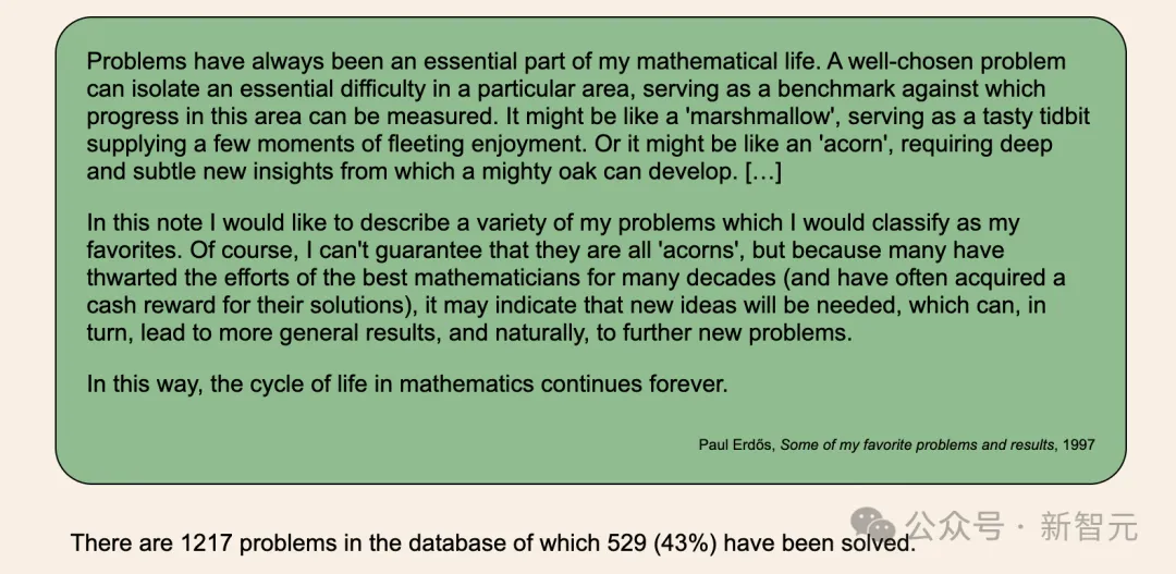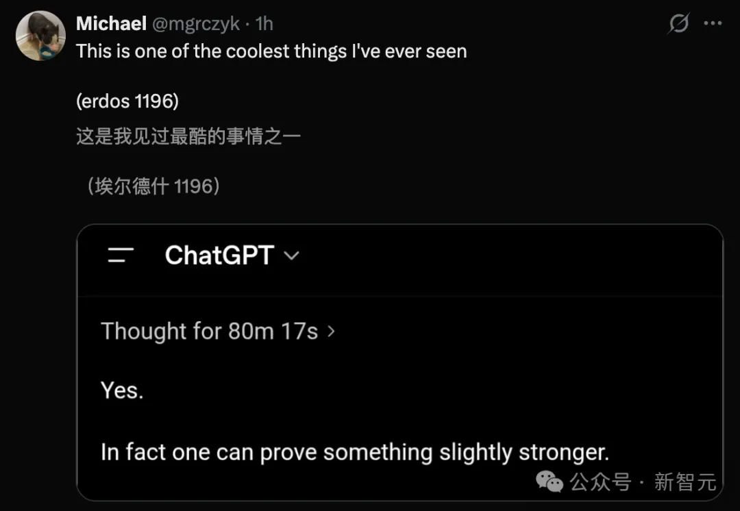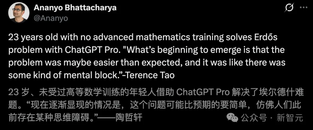 然后他说了一句让整个圈子安静下来的话:「这是第一个达到埃尔德什之书水平的AI数学成果。」