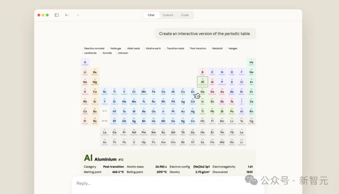 如果你问它关于元素周期表的问题,它能直接画一个可点击的周期表,每个元素点进去都有详细信息。