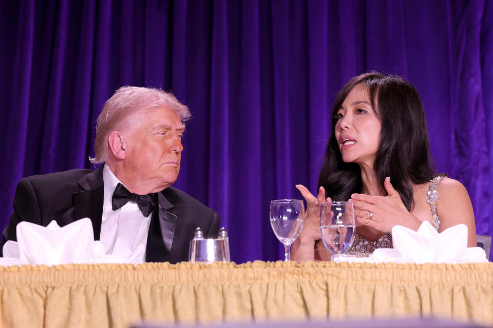 ▲4月25日,特朗普与蒋维佳在白宫记者协会晚宴上交谈 据视觉中国