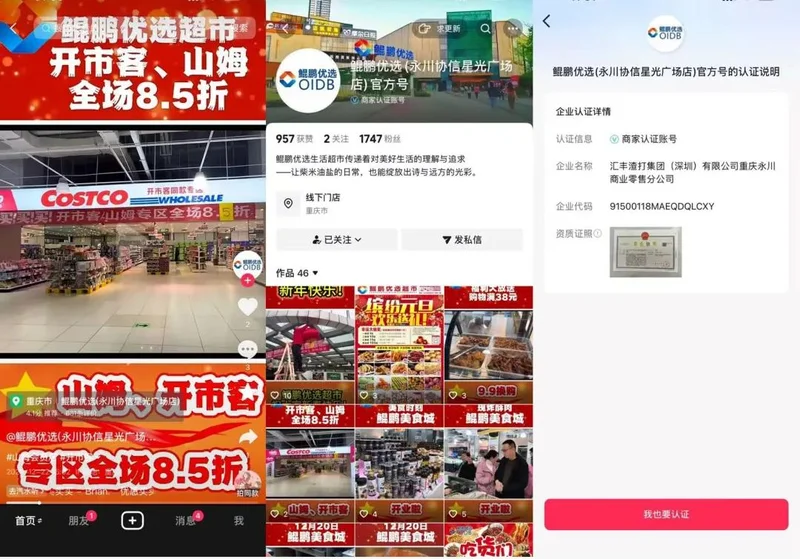 2025年9月下旬,鲲鹏优选超市在重庆永川协信星光广场的门店开业。其官方账号的认证主体为汇丰渣打集团(深圳)有限公司重庆永川零售分公司,负责人为胡某发。而皮某某曾在汇丰渣打集团(深圳)有限公司(目前已更名为“好事多商业零售投资深圳有限公司”)担任总经理。