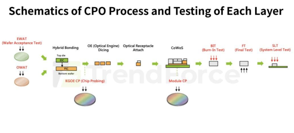 然而,CPO的检测与测试环节仍是一道难以逾越的门槛。行业目前缺乏统一标准,流程高度依赖人工,这使得测试成为制约CPO芯片大规模量产的主要瓶颈之一。TrendForce近日发布的研究对这一问题进行了系统梳理。