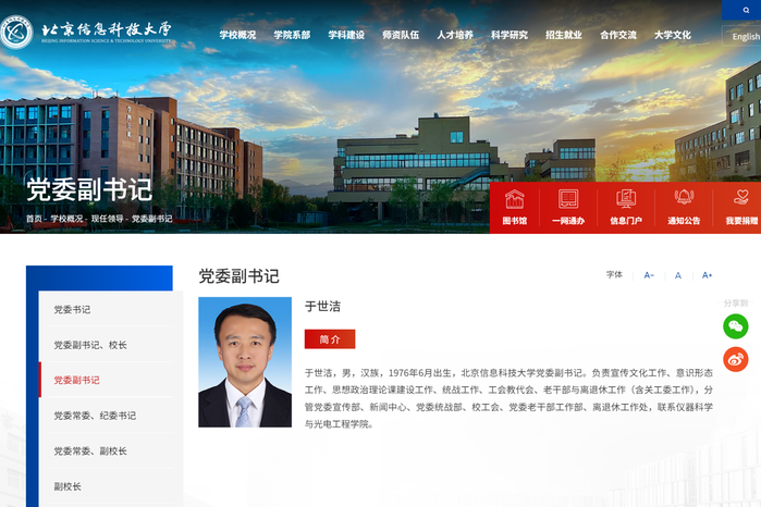 中共青海省委组织部 4 月 26 日发布《 省委管理干部任前公示》。其中: 于世洁,男,汉族, 1976 年 6 月生,中共党员,全日制博士研究生 ,现任北京信息科技大学党委副书记,拟 提任省属高校班子正职 。