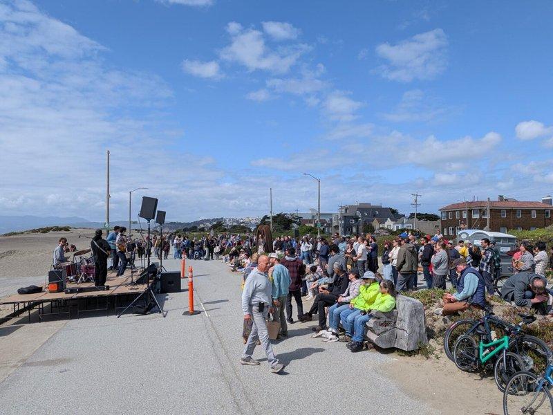 原定于上周日举行的日落沙丘公园(Sunset Dunes)一周年庆祝活动,因降雨顺延至26日。数百名旧金山居民当日聚集在海傍公路(Great Highway),享受现场音乐与美食,并欣赏海岸景致。